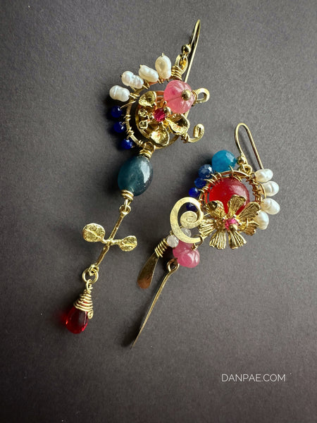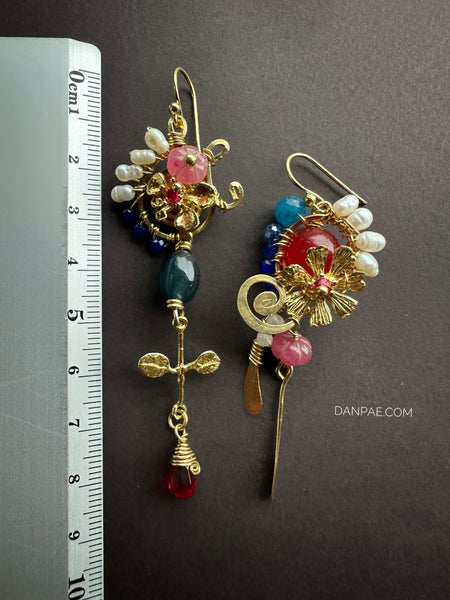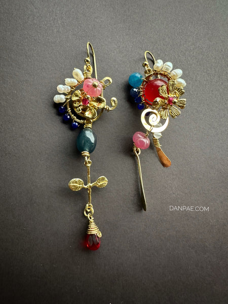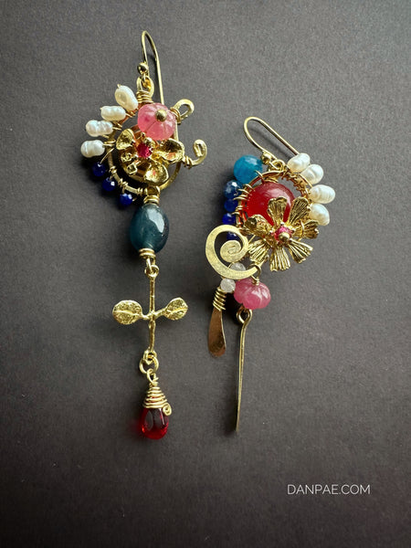 These enchanting brass earrings! With the fairy magic of Fresh Water Pearl, Labradorite, Apatite and Agate stones, these earrings sparkle with elegance and grace. They are sure to become a cherished treasure in your jewelry collection, beloved and adored by all who gaze upon them.