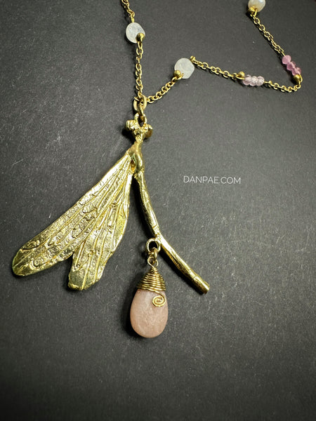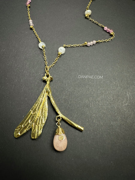 Light as a whisper from the wings of dawn, this brass dragonfly necklace carries the quiet enchantment of a wandering forest spirit.