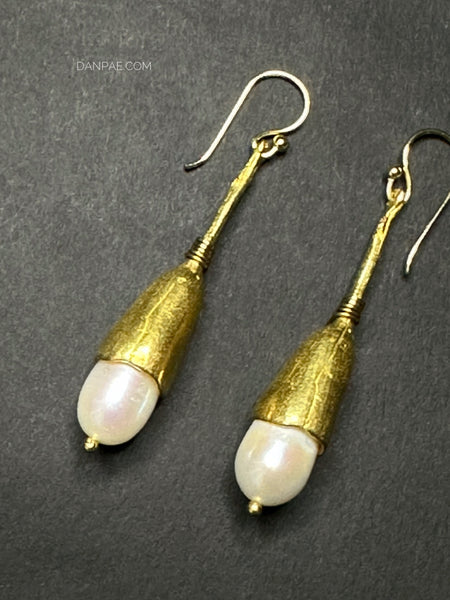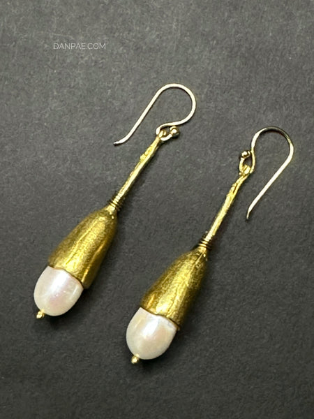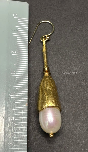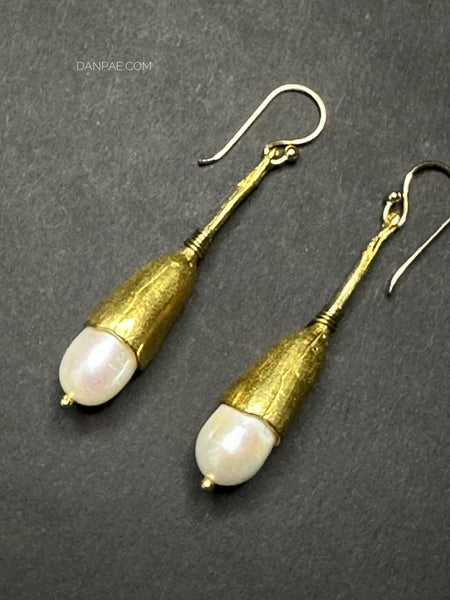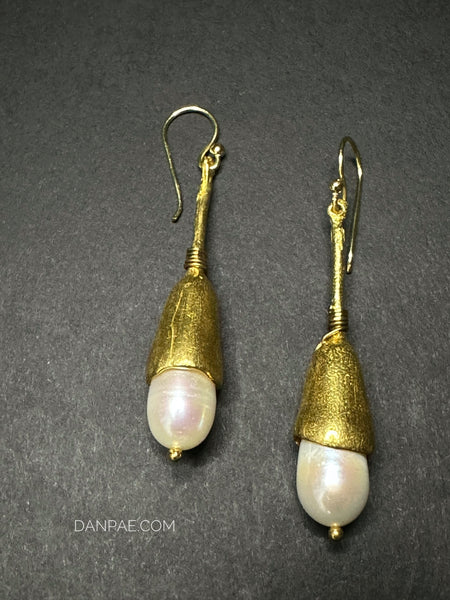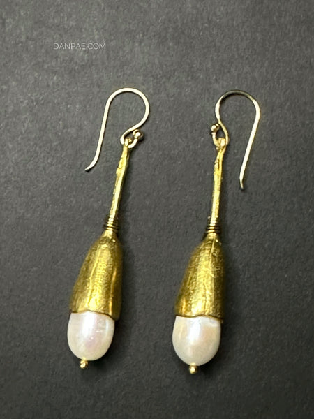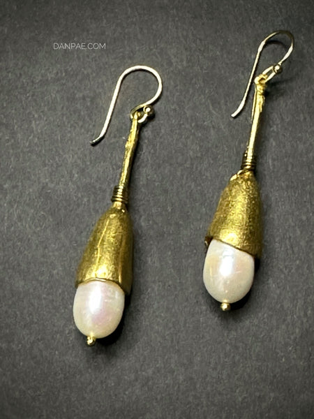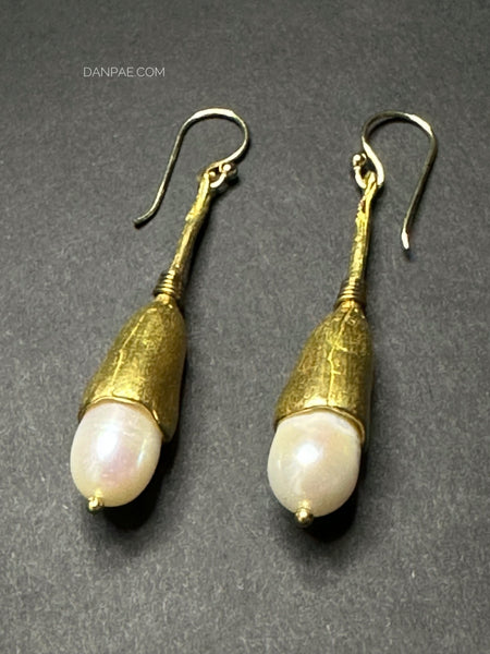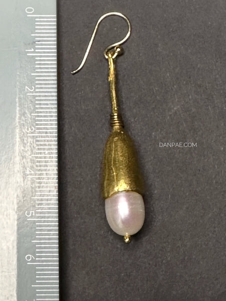 Handmade Brass earrings decorated with Cultured Pearl.