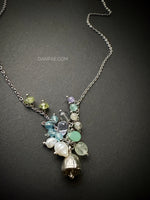 Wrap yourself in a touch of magic with this enchanting necklace, designed for dreamers and lovers of all things whimsical. The delicate stainless steel chain offers a timeless look, beautifully complemented by a stunning arrangement of Amethyst, Peridot, Freshwater Pearl, Chalcedony and Apatite stones.