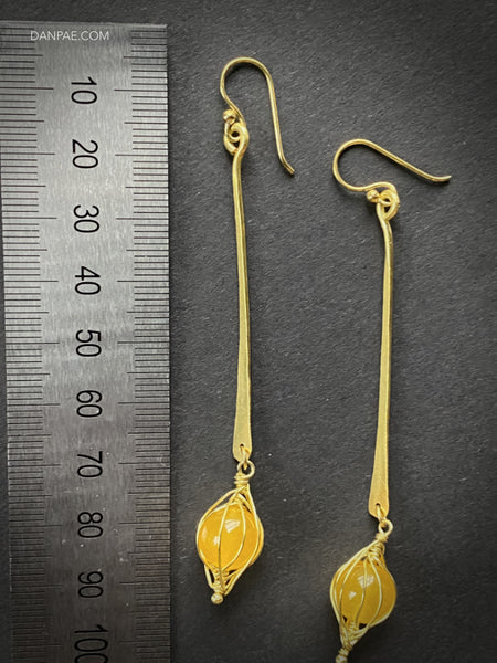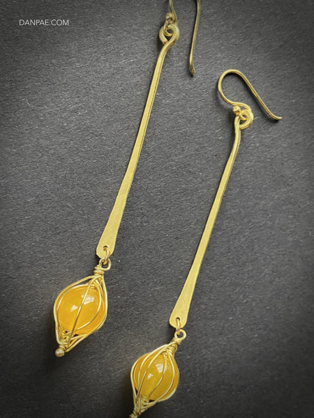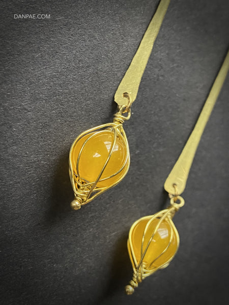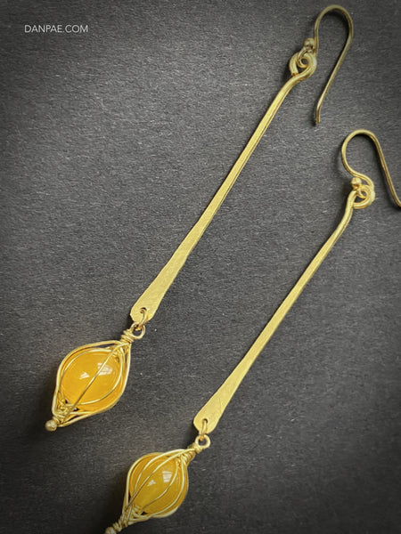 Handmade Art Earrings design in brass. Decorated with Agate stone.